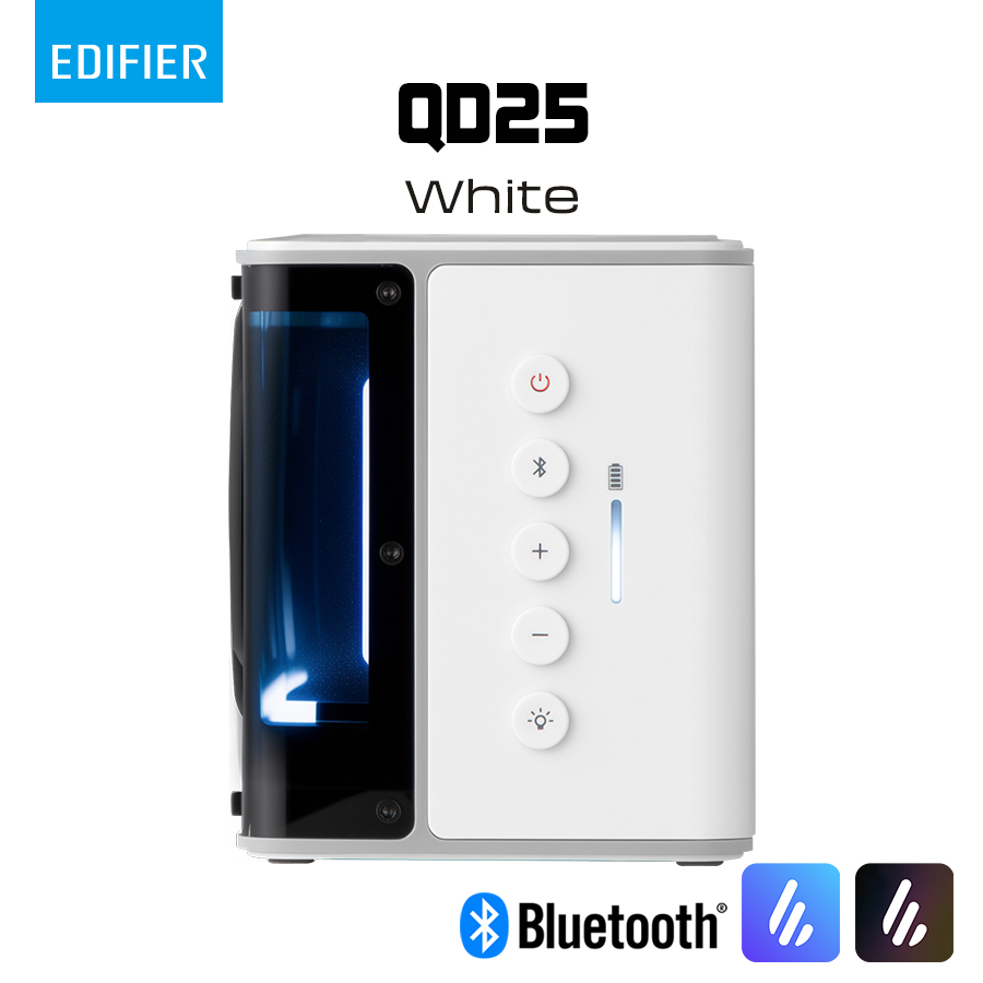 Loa Bluetooth Edifier QD25 là mẫu loa để bàn hiện đại, mang đến trải nghiệm âm thanh Hi-Res mạnh mẽ cùng thiết kế đèn LED đa sắc, phù hợp cho không gian phòng khách, phòng làm việc hoặc những buổi tiệc nhỏ.